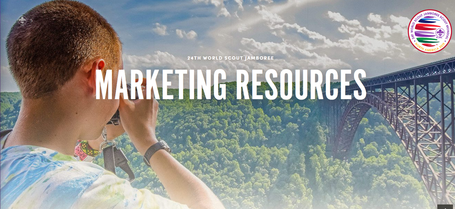 The 24th World Scout Jamboree Marketing Resources are designed to give NSOs on-demand access to branded assets and marketing material to support local promotional efforts. Available items include the 24th World Scout Jamboree Brand Guide, fliers, posters, logos, web images, templates, and more.