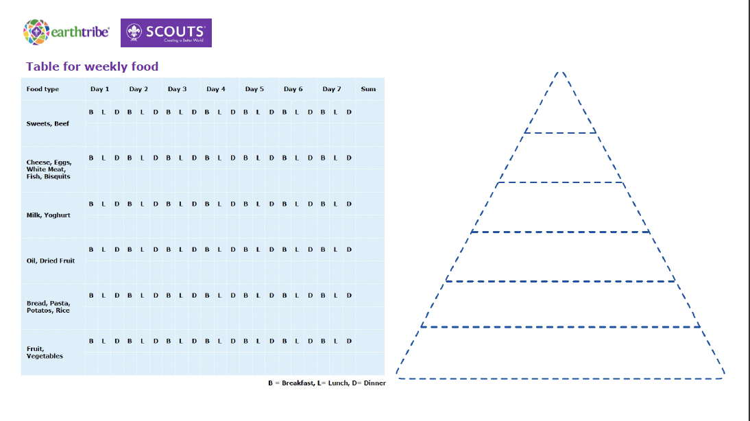Measure the impact of your diet with this simple resource that explain how much our daily intake impacts the environment. See more activities and challenges on the Scouts for SDGs Hub: sdgs.scout.org