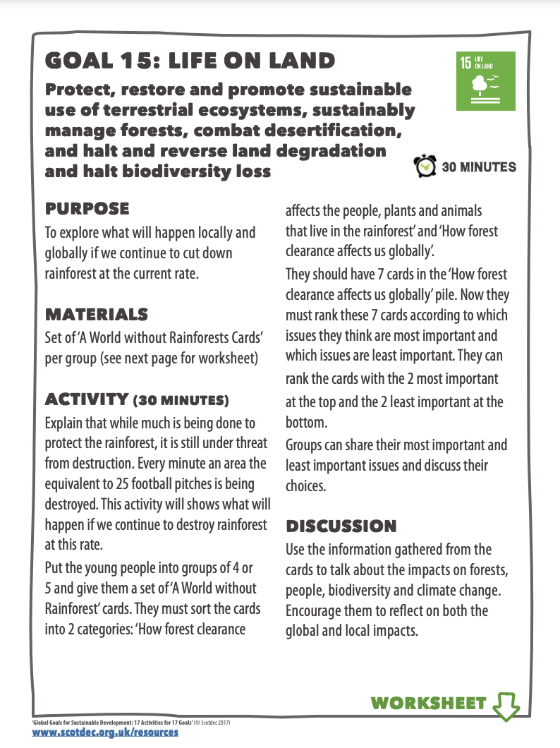 Use this UK Scouts resource to explore the dire scenario of a planet with no trees. See more activities and challenges on the Scouts for SDGs Hub: sdgs.scout.org