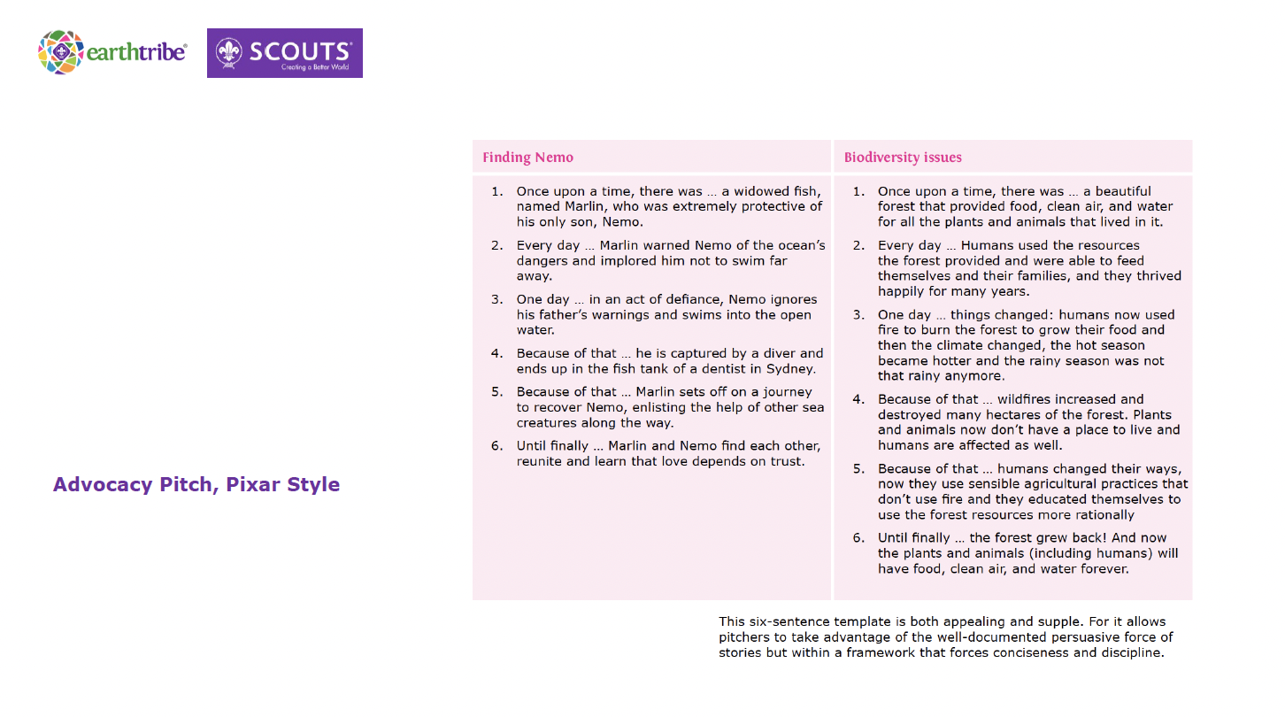 Learn how to create a compelling pitch to present your project or advocate for environmental causes. See more activities and challenges on the Scouts for SDGs Hub: sdgs.scout.org