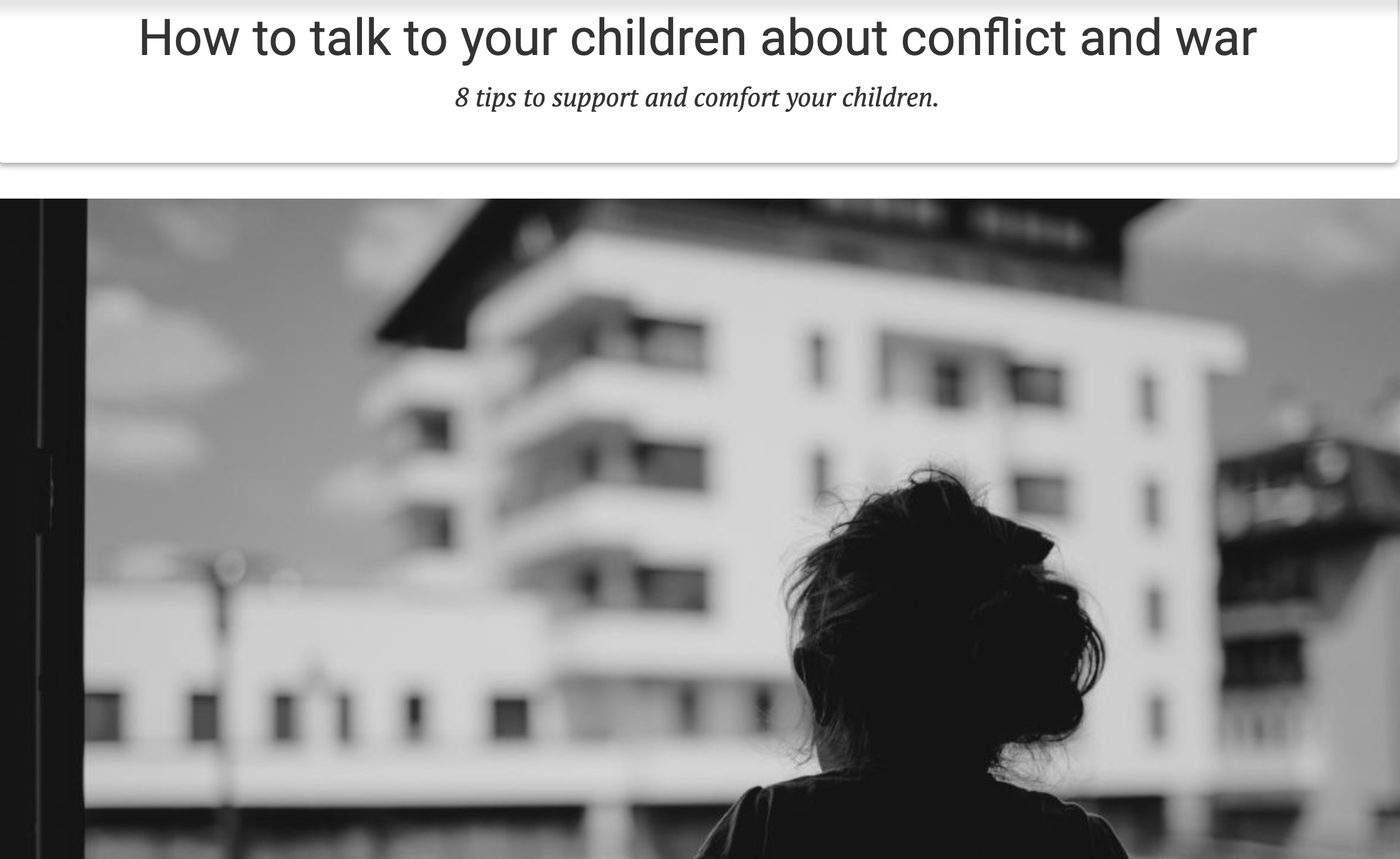 When conflict or war makes the headlines, it can cause feelings such as fear, sadness, anger and anxiety wherever you live. Check out this resource from UNICEF for some tips on how to approach the conversation with your child and to provide them with support and comfort.