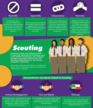 Scouting's values and methos go hand in hand with Humanitarian principles. Our response through: awareness, skills for life and improving opportunities for non-formal education is essential!