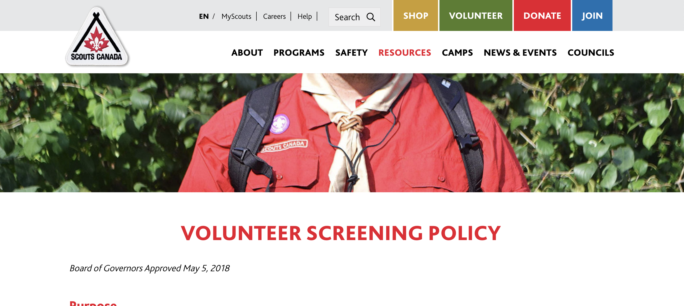 This policy outlines the requirements for volunteer screening prior to someone volunteering with Scouts Canada.