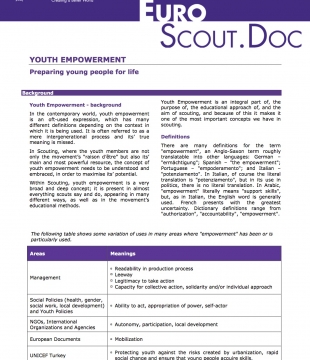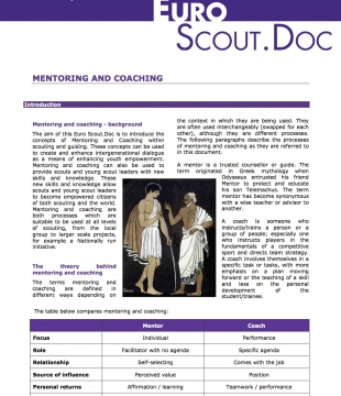 The aim of this Euro Scout.Doc is to introduce the concepts of Mentoring and Coaching within scouting and guiding. These concepts can be used to create and enhance intergenerational dialogue as a means of enhancing youth empowerment.