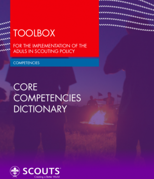 Toolbox for the implementation of AiS Policy: Core Competencies DictionaryThis dictionary is aimed at those responsible for the management of adults in the National Scout Organizations and presents a proposal for any scheme of core competencies, explaining in a practical way its use for the posit